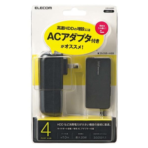 エレコム USB3.0 ハブ 4ポート 1m ACアダプタ付 セルフ/バス両対応 MacBook / Surface Pro / Chromebook他 ノートPC Nintendo Switch対応 ブラック U3H-A408SBK