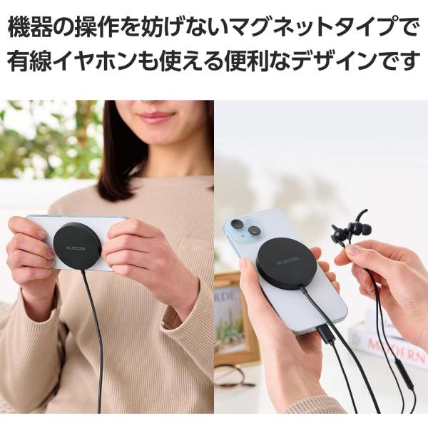 ●マグネットでスマートフォンの背面にぴったりくっつくため、ワイヤレス充電中のスマホ操作も可能。