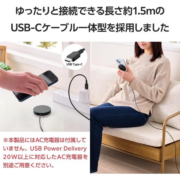 ●一体型ケーブルにはUSB・Type-C(TM)プラグ採用。USB Type-CポートのAC充電器から充電できます。