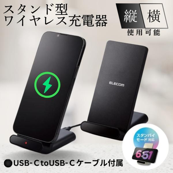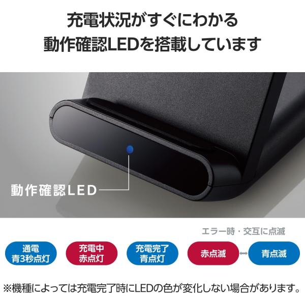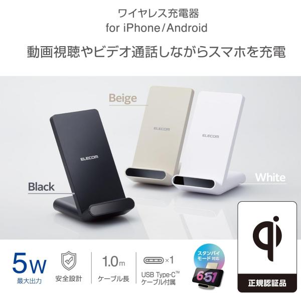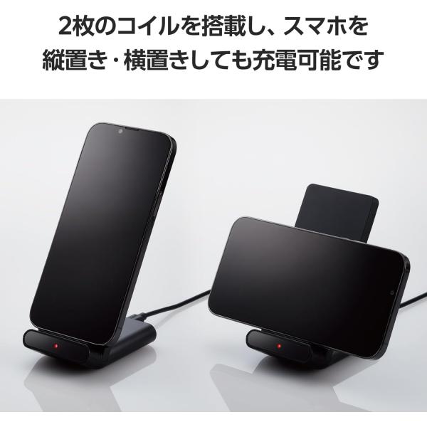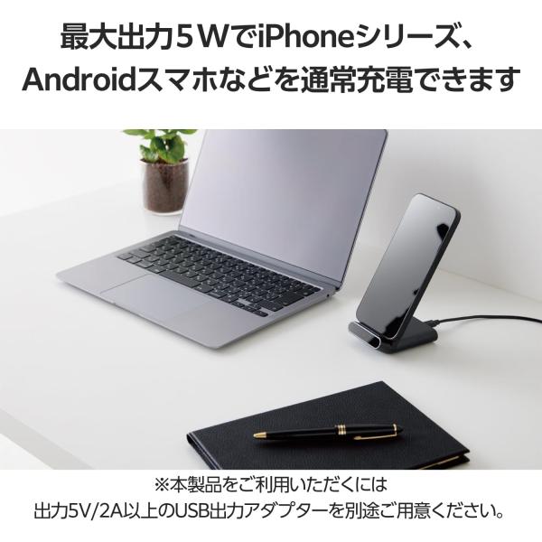 エレコム ワイヤレス充電器 Qi 正規認証品 スタンド 5W ケーブル付属 動作確認用LED 縦 横置き対応 USB充電器は別売り ブラック W-QS09BK