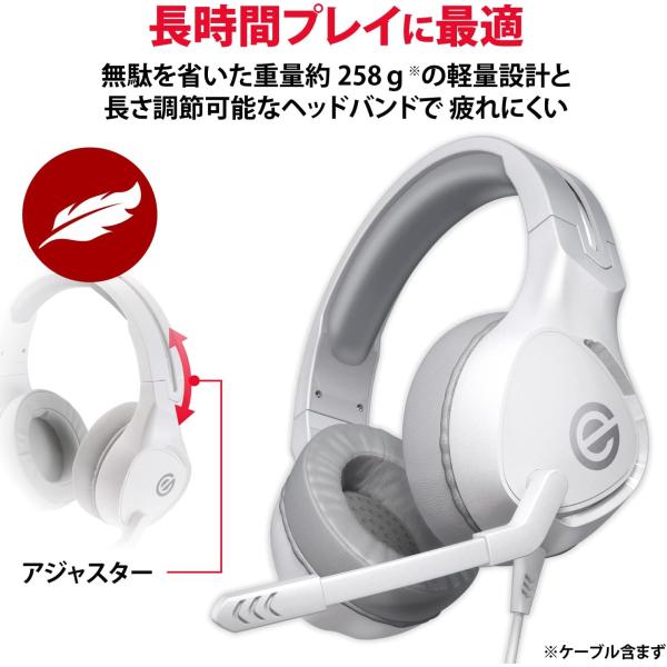 エレコム ゲーミングヘッドセット 有線 ヘッドホン 軽量×やわらかイヤーパッド 長時間のプレイも快適 ホワイト HS-G01WH