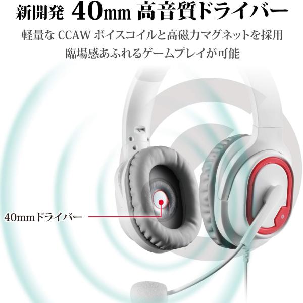 ● ゲーミング向け専用にカスタマイズした新開発の40mm高音質ドライバー採用。臨場感あふれるゲームプレイが可能。