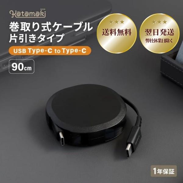 ケーブル 巻き取り 充電ケーブル 急速 USB タイプC to Cケーブル 90cm タイプCケーブル 片引き スマホ タブレット対応 ブラック OWL-CBKRPCC90-BK オウルテック