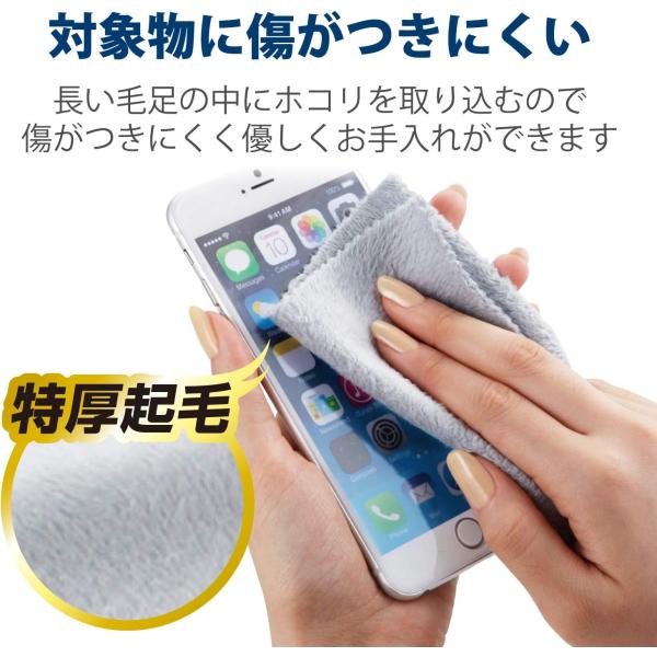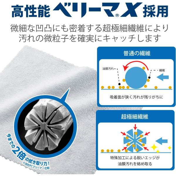 ● 拭き取りやすい特厚の起毛タイプで、従来製品に比べて2倍の拭き取り力を実現します。