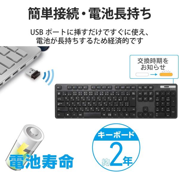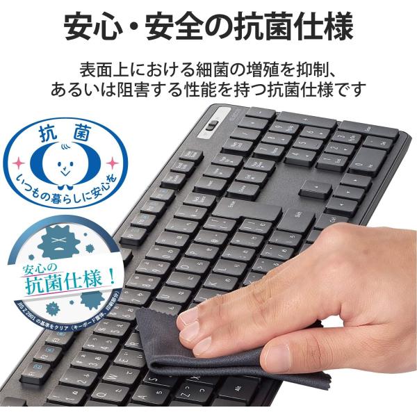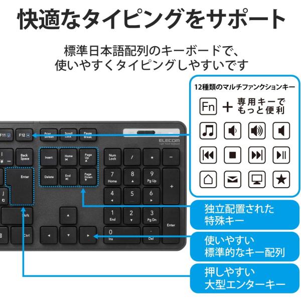 エレコム キーボード ワイヤレスキーボード 薄型 メンブレン式 抗菌 テンキー付 ブラック TK-FDM110TKBK