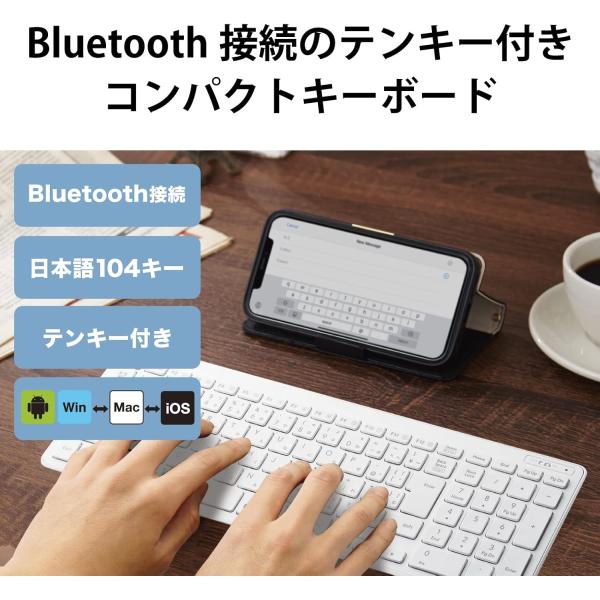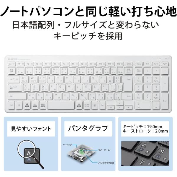 エレコム キーボード Bluetooth パンタグラフ コンパクトキーボード Windows・Mac・iOS・Android対応 ホワイト TK-FBP101WH