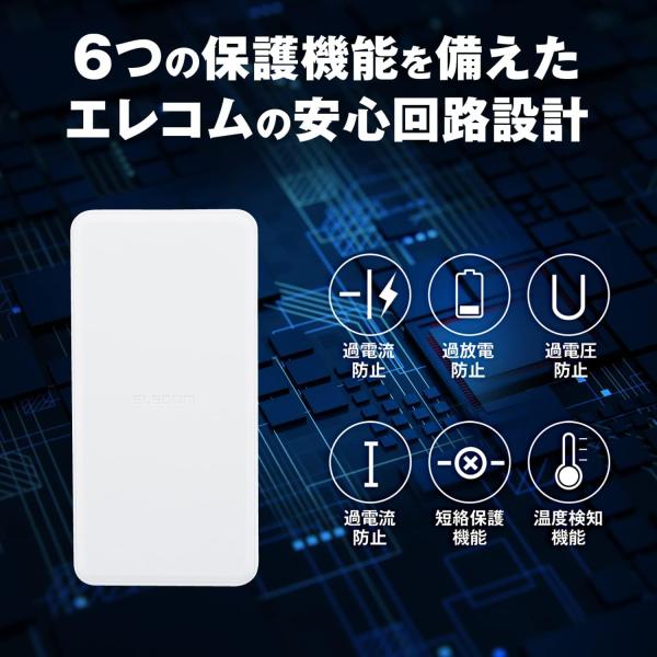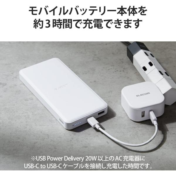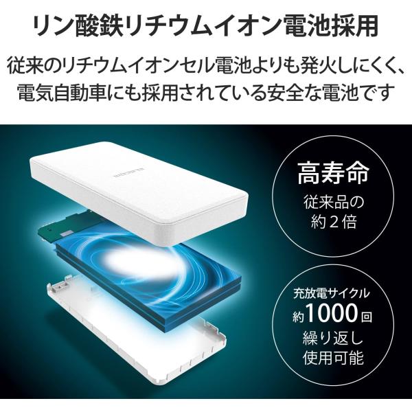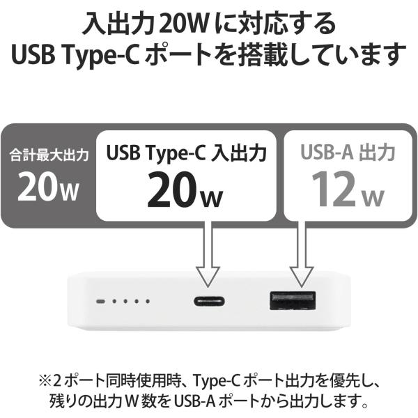 モバイルバッテリー 大容量 急速充電 12000mAh USB パワーデリバリー20W C×1+A×1 リン酸鉄20W USB-A 出力 1ポート エレコム ホワイト DE-C39-12000WH