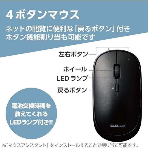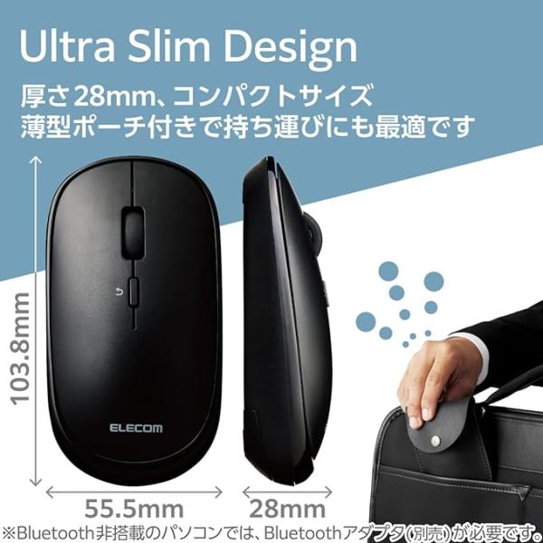 エレコム ワイヤレスマウス Bluetooth Slint 薄型 静音 4ボタン プレゼンモード機能付 ポーチ付 Windows Mac Android iOS iPadOS 対応 ブラック M-TM10BBBK