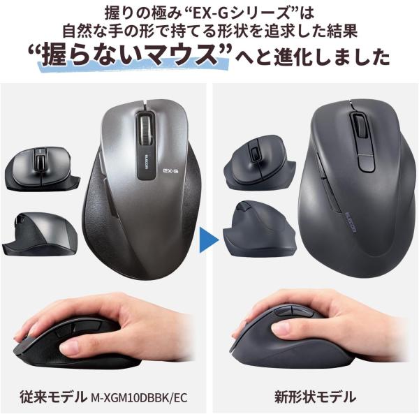 エレコム マウス ワイヤレスマウス EX-G 無線2.4GHz 静音 Mサイズ 5ボタン 「AskDoctors評価サービス」認証 抗菌 ブラック M-XGM30DBSKBK
