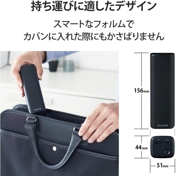 エレコム モバイルバッテリー 20100mAh 大容量 ( USB PD対応 ) 52.5W Type-C×1 / USB-A×1 ブラック DE-C33L-20000BK