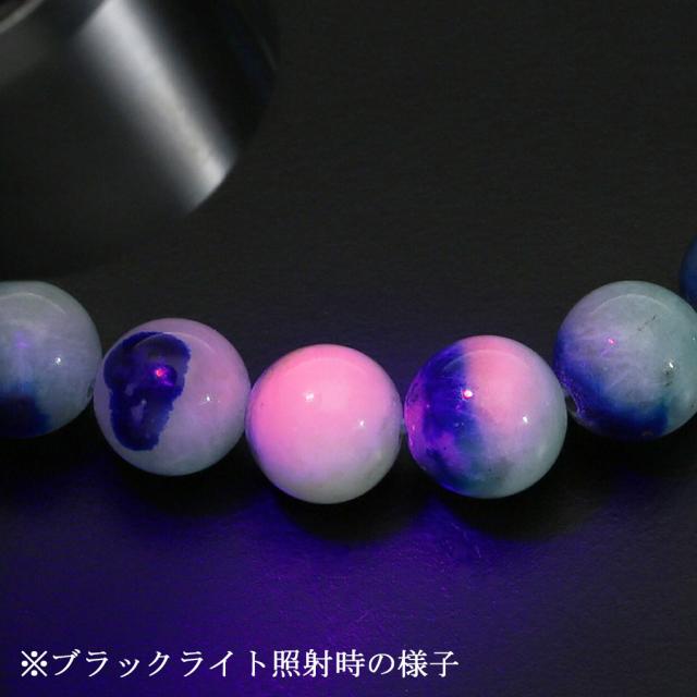ブラックライトを当てることでピンクやオレンジに発光する様子もご覧いただけます。