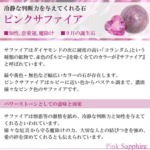 サファイア(青玉)は憎悪等の激情を鎮め、冷静な判断力と知性を与えてくれるといわれています。