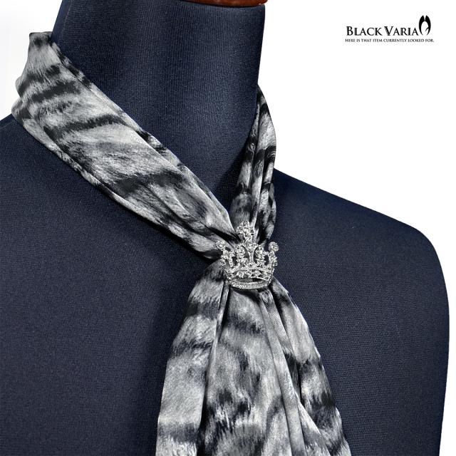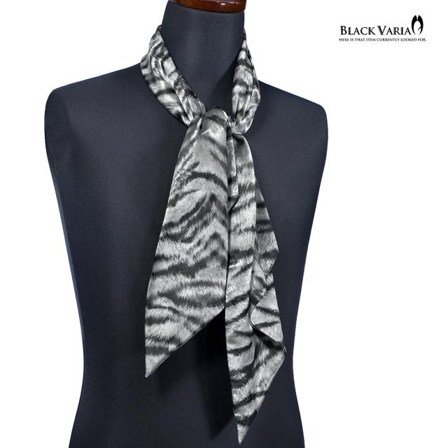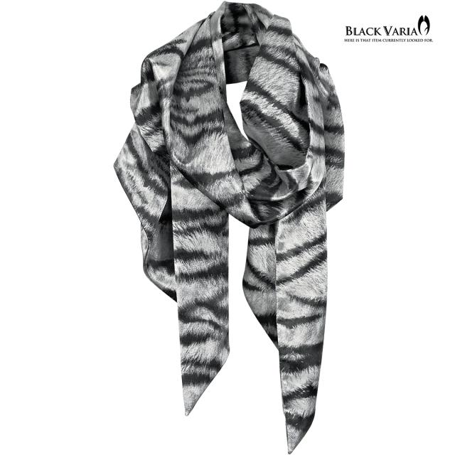BLACK VARIA ブラックバリア ストール 虎柄 サテン ストールリング メンズ スカーフ パーティー 日本製(グレー灰ブラック黒) st012