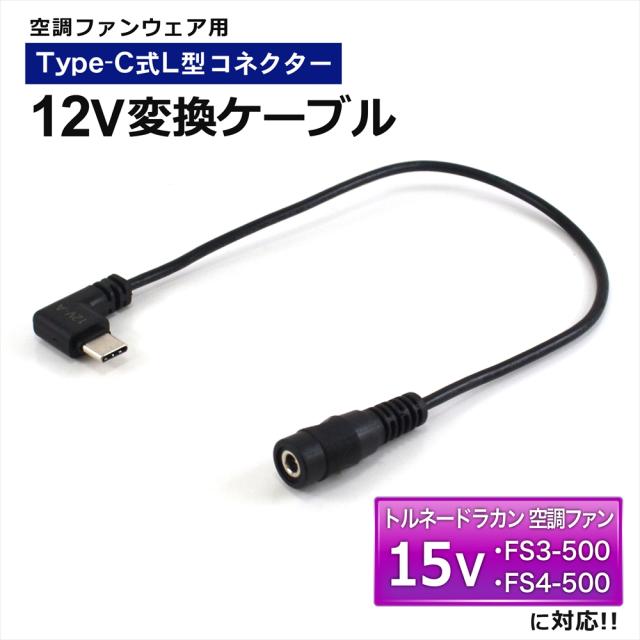 トルネードラカン2022年 15V FS4-500 2021年 15V FS3-500 対応 変換アダプターType-C L型 ファンベスト ファン付き作業服 12V モバイルバッテリー バッテリー 変換 アダプター ケーブル USB-C端子 タイプC TORNADO RAKAN 空調ファン 空調ウェア 【12V-A】