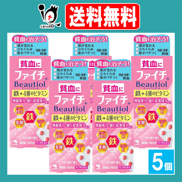 【第2類医薬品】ファイチ Beautiol(ビューティオール) 30錠×5個セット【小林製薬】貧血改善薬 貧血を治そう!鉄+4種のビタミン 増血成分・血行促進成分配合 貧血に 鉄剤 鉄分補給