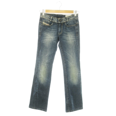 【中古】ディーゼル DIESEL SOOZY デニムパンツ ブーツカット ストレッチ ウォッシュ加工 チェーン装飾 24 紺
