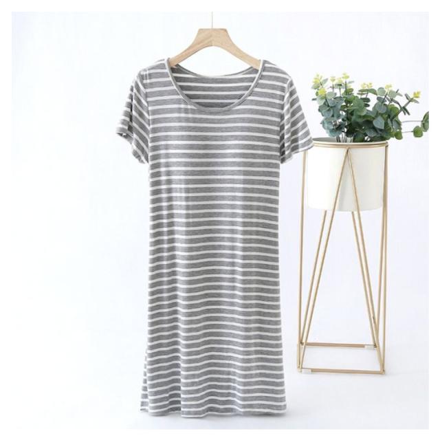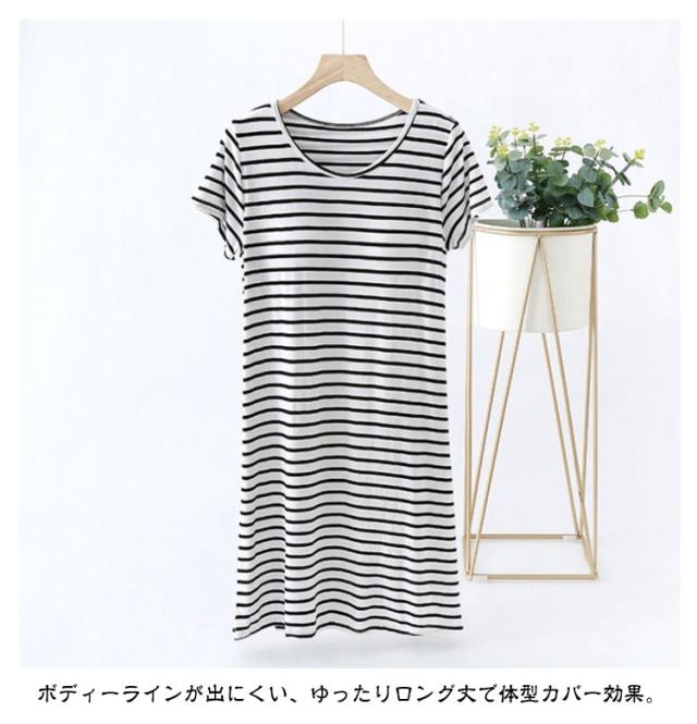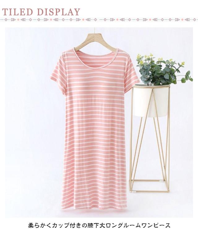 | 【M〜4XL】【全4色】カップ付きボーダー柄ワンピース 柔らかくカップ付きの膝下丈ロングルームワンピース 軽くて動きやすいので、普段の家事や旅先の部屋着にもおすすめ。 ボディーラインが出にくい、ゆったりロング丈で体型カバー効果。 締め付け感がないので、妊婦さんにもオススメ! 女性らしいスリムシルエットが楽しめるルームウェアです。 お部屋でのリラックスタイムや、就寝時のパジャマ、ルームウェア、ナイトウェア、寝間着、お休みの時の部屋着としても最適です。 | |