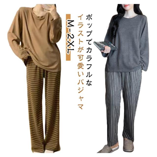 | ポップでカラフルなイラストが可愛いパジャマ。 トップスの生地は柔らかく伸縮性があり着心地のいい感じになっていて、下のロングパンツはしっかりとした生地でインナーが透けにくくなっています。 ポリエステル素材を使用した、春秋にぴったりのレディースパジャマ上下セット。 丸襟&プルオーバーの上品デザインが、リラックス感の中にも女性らしさを引き立てます。 薄手でもしっかりとした生地感で、季節の変わり目に快適な着心地 | |