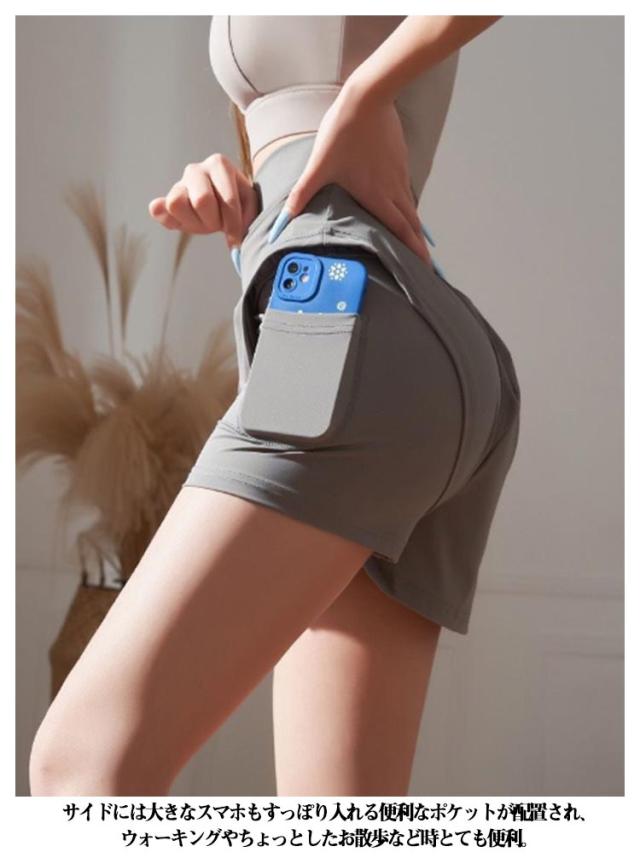 | ランニングやスポーツにおすすめなショートパンツです。 ジム使いで活躍できる機能性スポーツウエア。 体にフィットしてボディラインを綺麗にみせてくれます。 通気性に優れた素材で、汗によるムレやベタつきを軽減し履き心地が良く、サラサラと軽い肌触りです。 サイドには大きなスマホもすっぽり入れる便利なポケットが配置され、ウォーキングやちょっとしたお散歩など時とても便利。 ヨガやジム、フィットネス、太極拳にも大活躍。部屋着としてもおすすめ! 中にインナーパンツが付き、おもいっきり動いてもインナーがしっかりカバーしてくれ、下着が見えず安心です。 | |
