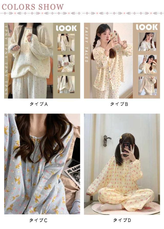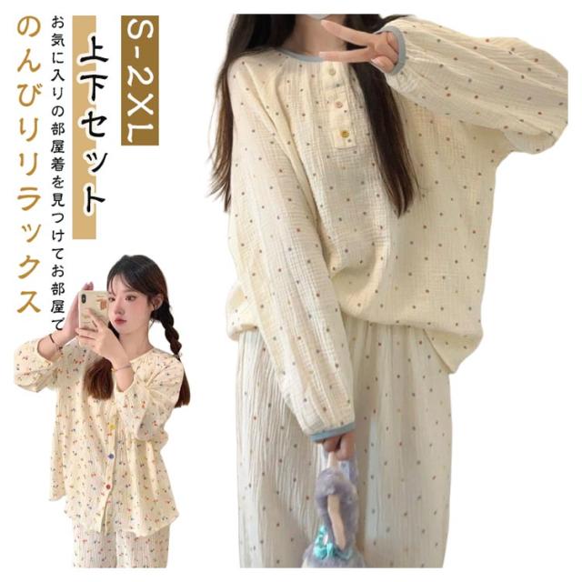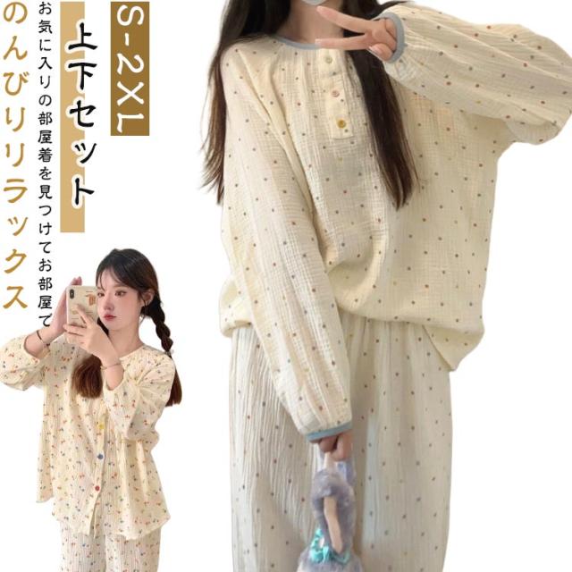 2点セット 長袖 ルームウェア セットアップ レディース 長袖 パジャマ かわいい パジャマ 長ズボン カジュアル 上下セット 通気性 吸水性 韓国 部屋着 上下セット 着心地 おしゃれ 高校生 ママ プルオーバー ロングパンツ 春 秋