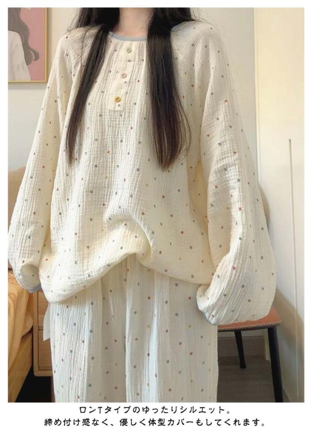 | お気に入りの部屋着を見つけてお部屋でのんびりリラックス お部屋でのリラックスタイムはもちろん、リモート飲みや女子会でお揃いで着てもかわいいシンプルデザイン。 薄手で程よい厚みの生地感なので、気温を把握しにくい旅行にも◎ ロンTタイプのゆったりシルエット。締め付け感なく、優しく体型カバーもしてくれます。 ウエスト部分がゴムだから窮屈感もなくお腹周りもラクな穿き心地。 | |