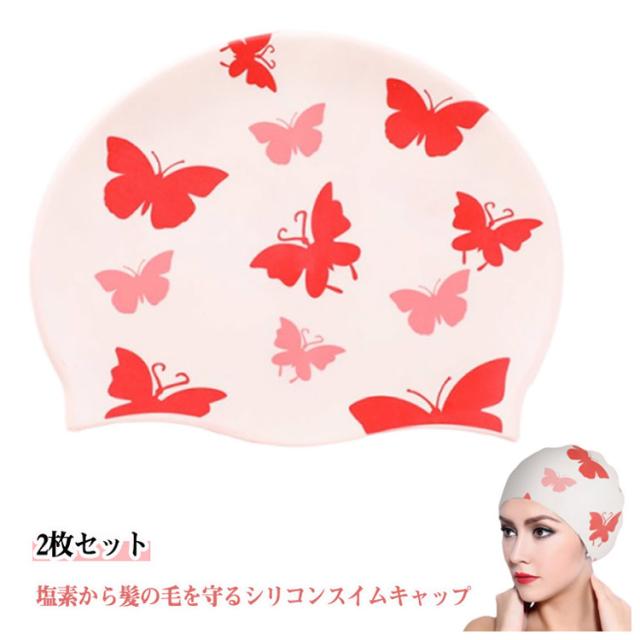 水泳帽 水泳キャップ 水泳帽 長い髪守り レディース 2枚セット スイミングキャップ シリコンキャップ ロングヘアーにも対応 水泳帽 シリコンスイムキャップ 水泳 軽量 プリント リボン かわいい 防水水泳帽 フィットネス水着