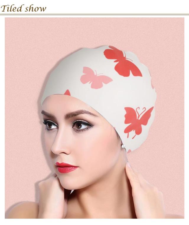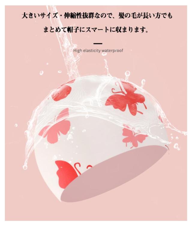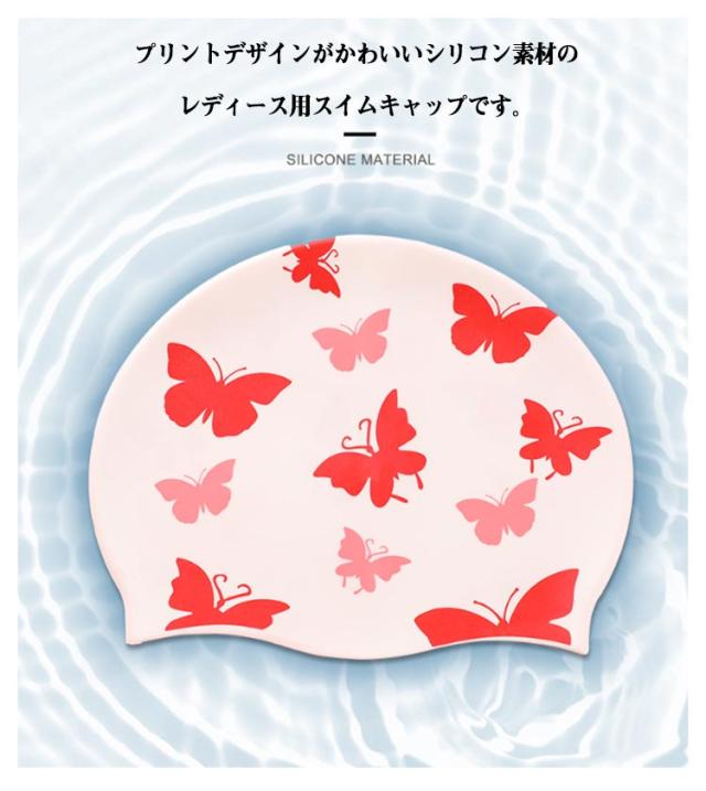 | 塩素から髪の毛を守るシリコンスイムキャップ♪ 大きいサイズ・伸縮性抜群なので、髪の毛が長い方でも、まとめて帽子にスマートに収まります。 プリントデザインがかわいいシリコン素材のレディース用スイムキャップです。 シリコン素材を用いており、頭にピッタリとフィットするので、水の抵抗を受けにくく、髪が濡れにくいので髪や頭皮を塩素から守ってくれます。 やわらかくてかぶりやすい!しめつけないから、練習用におすすめ。 | |