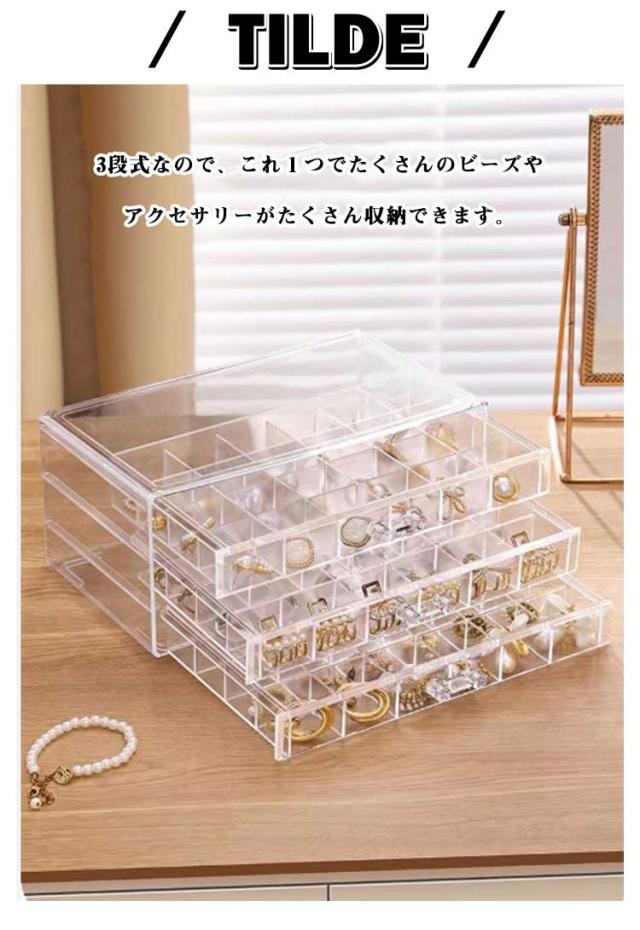 収納 アクセサリー 小分け ピアスケース コレクション ビーズケース ビーズケース 収納 3段 ジュエリーポーチ アクセサリー 引き出し ボックス ジュエリーケース 防塵 整理整頓 入れ物 仕切り クリア 収納ケース アクセサリーケース 透明 小物収納 送料無料 ギフト
