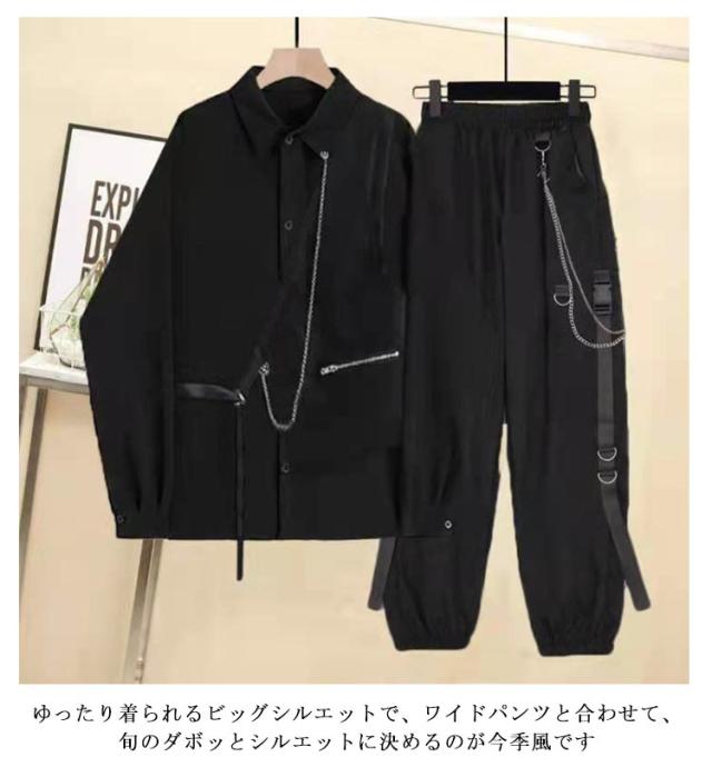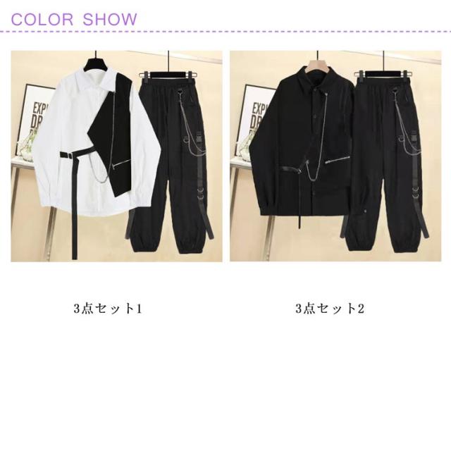 メンズ レディース ダンス ベスト ダンス 長袖 ダンス衣装 ダンス カーゴパンツ 長ズボン パンツ L 男女兼用 チェーン付き 韓国ファッション ビッグシルエット ゆったり S M セットアップ XL 2XL