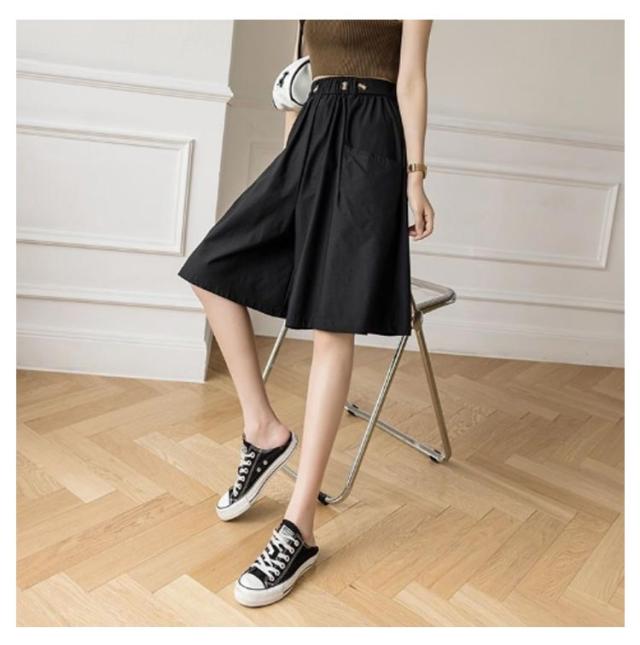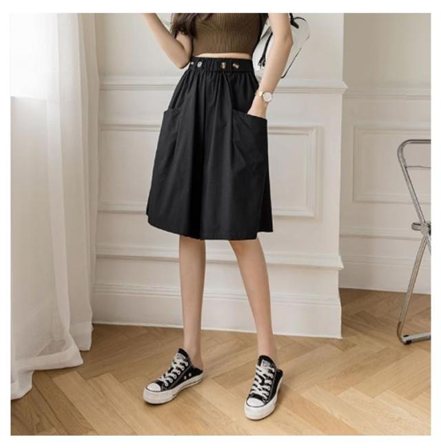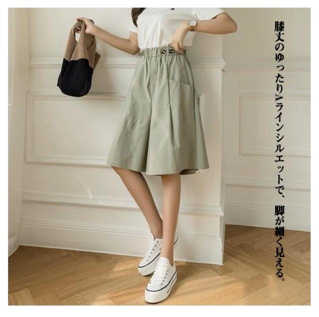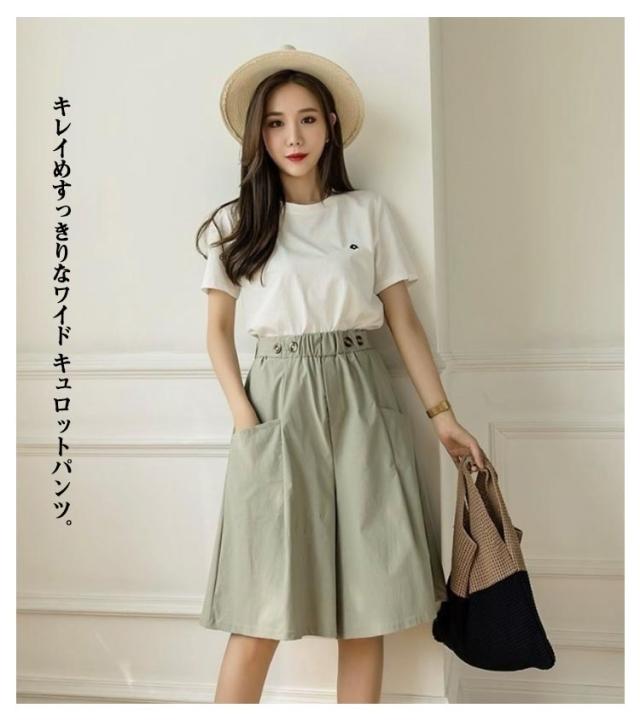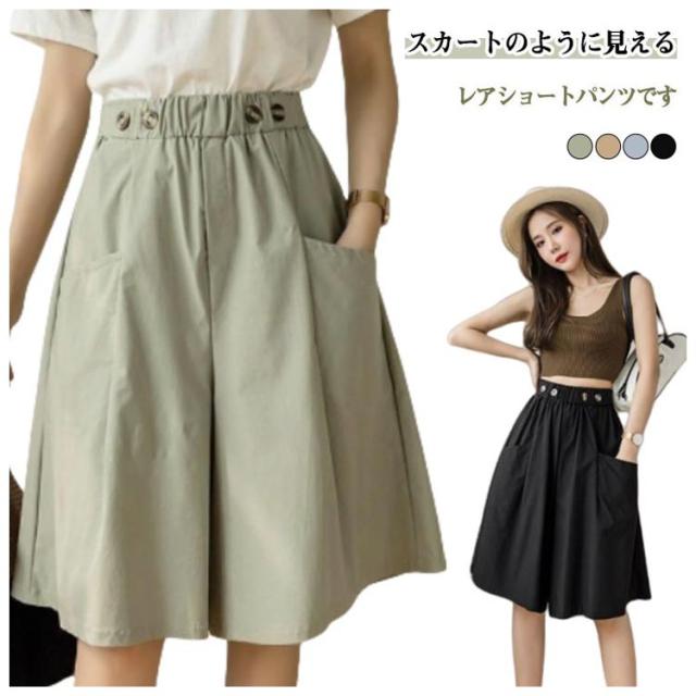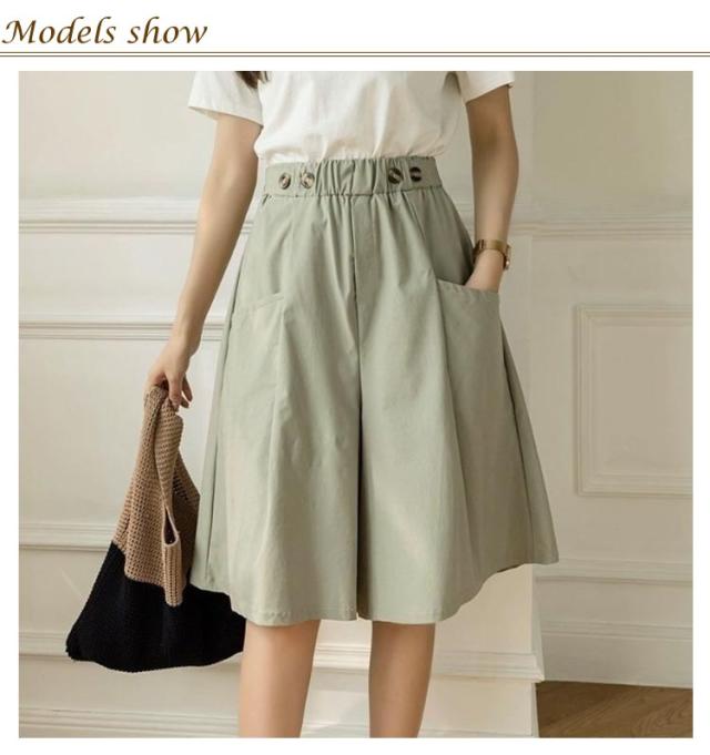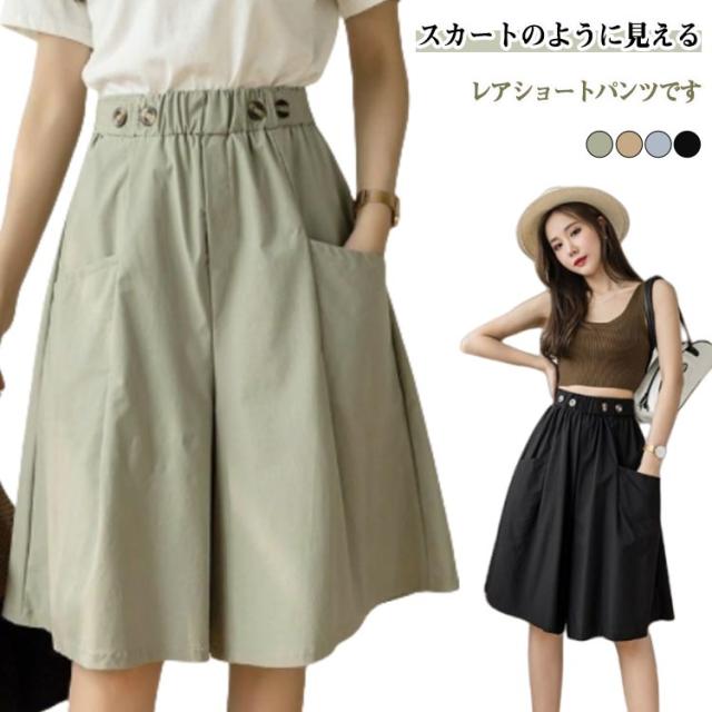 五分丈 きれいめ ひざ下 スカーチョ ショートパンツ 無地 ショートパンツ 夏用 ガウチョパンツ ハーフパンツ ストレッチ ゆったり レディース Aライン ワイドパンツハイウエスト 美脚パンツ ウエストゴム ポケット付き キュロットパンツ