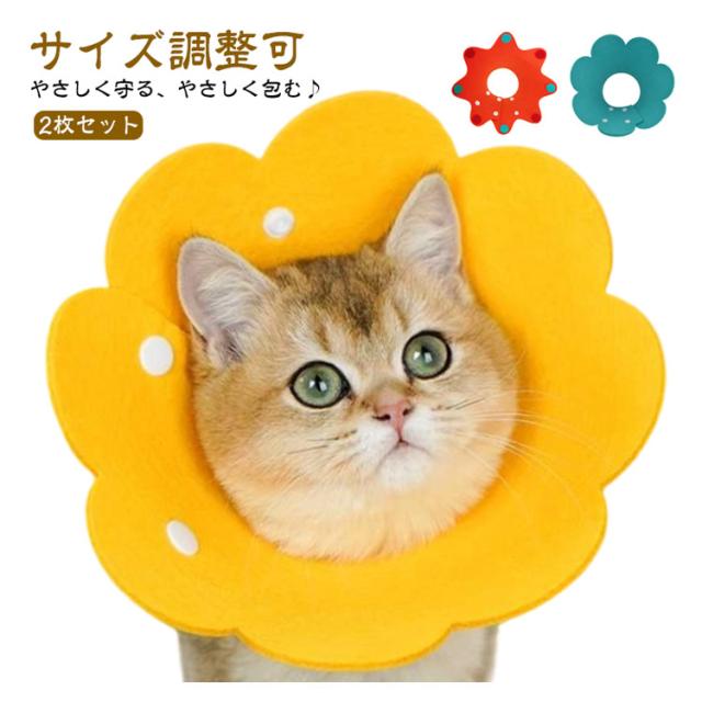 ソフトフェルト サイズ調整可 超軽量 2枚セット 柔らかい 手術後 介護 舐め 去勢手術 エリザベスカラー 避妊手術 怪我 傷 猫 防止 エリザベスカラー 可愛い お花 フラワー 子犬 傷口保護傷舐め防止 引っ掻き防止 ソフトエリザベスカラー