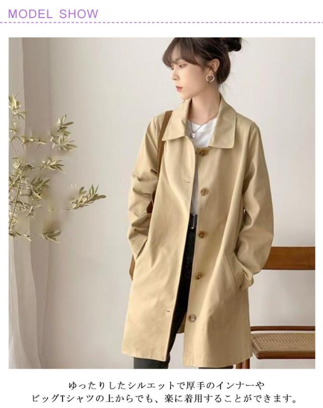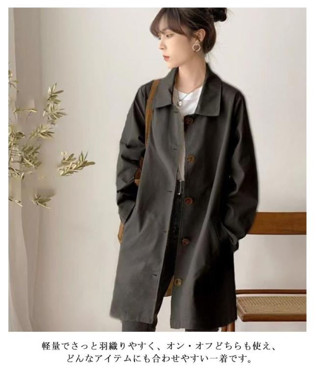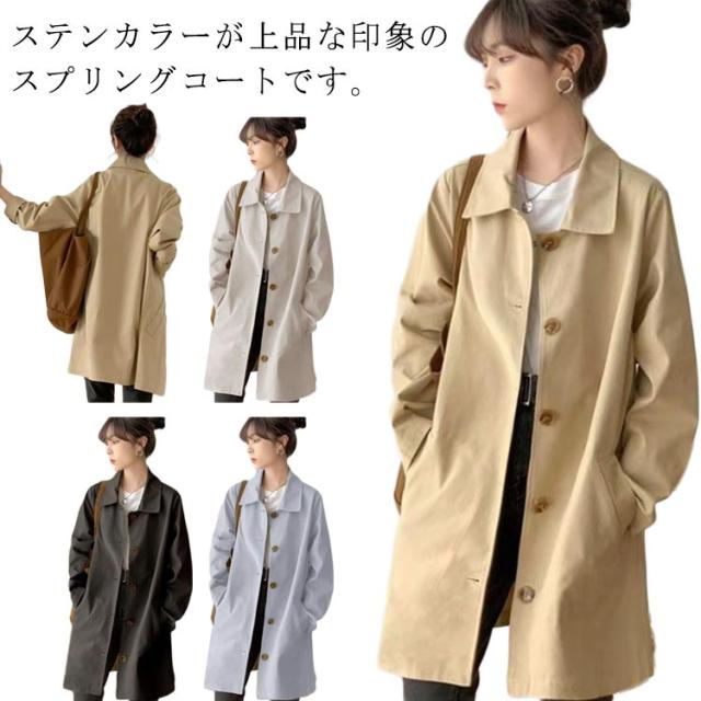 スプリングコート 長袖 春 無地 ステンカラーコート 大人 ステンカラーコート ゆったり Aライン 秋 アウター ミドル丈 羽織り ライトアウター シンプル おしゃれ レディース 大きいサイズ カジュアル きれいめ フェミニン 通勤 通学