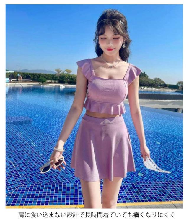 | 【体型カバー】 ■気になる部分を隠しながら適度な肌見せが可愛い! 裾のフレアフリルでボディーラインをカバー! ハイウエストだから気になる腰周りやお腹周りも隠れてスタイルアップ! 【小胸カバー】 ■胸の谷間が隠れるタンキニは、パッドやシリコンブラでバストメイクが 可能!小胸が気になる女子にもおすすめの水着です! 【エンボス加工素材】 ■ニットのようなエンボス加工の生地は、見た目も着心地も抜群! 肩に食い込まない設計で長時間着ていても痛くなりにくく なで肩の方でもずれ落ちにくい! 【ノンワイヤーパッド付き】 | |