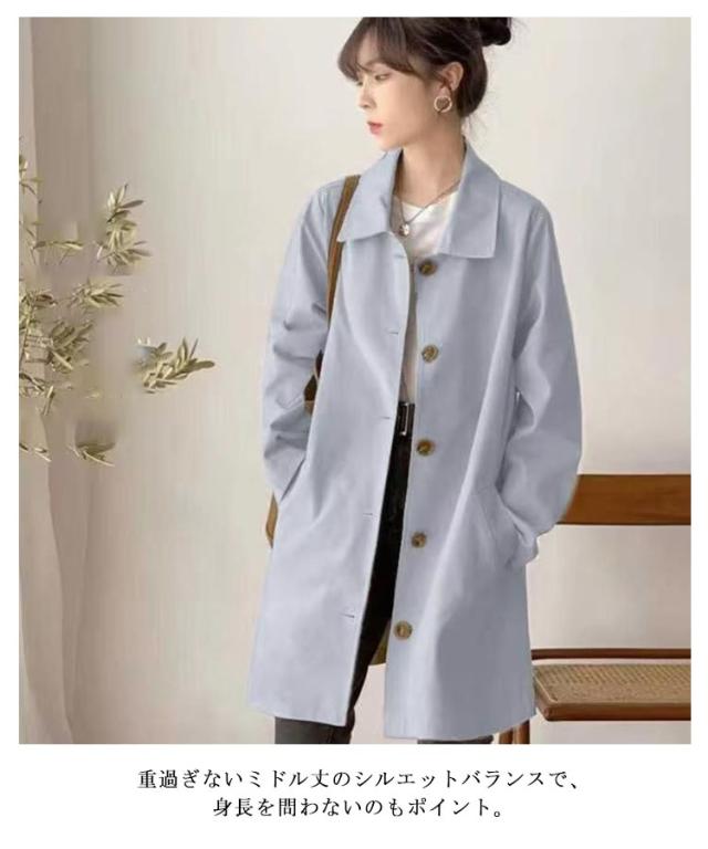 ゆったり スプリングコート 無地 ライトアウター 秋コート 大人 長袖 アウター 春 秋 Aライン ステンカラーコート 羽織り ステンカラーコート シンプル ミドル丈 おしゃれ 大きいサイズ カジュアル きれいめ フェミニン 通勤 通学