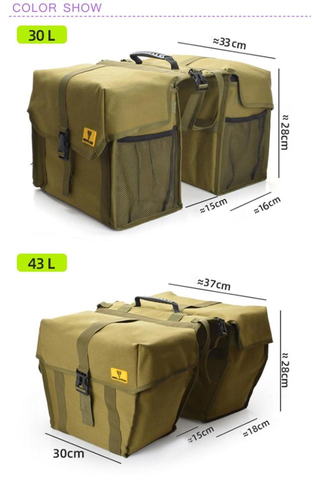 自転車 フラップトップ式 キャンバス バッグ リアキャリア 大容量 30L 大容量 自転車リアバッグ 送料無料 防水撥水パニアバッグ 左右一体型 自転車 リアキャリアバッグ 防水 シンプル ポケット 持ち運び サイクリング ロードバイク