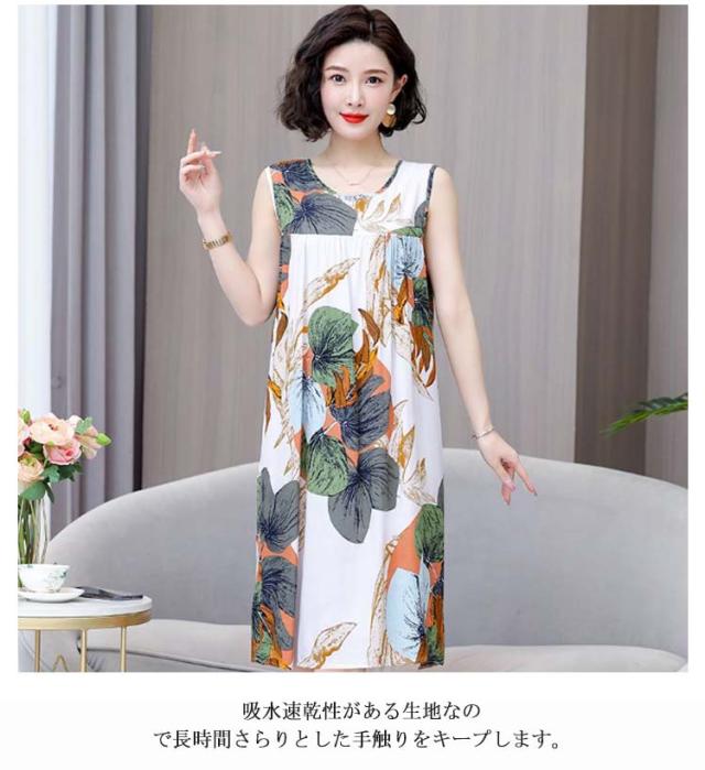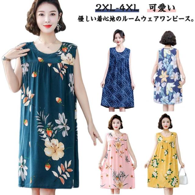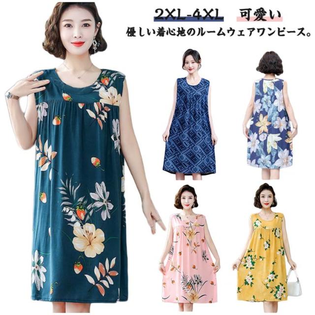 夏 ルームワンピース レディース タンクワンピース ナイトウェア ノースリーブ ワンピース 部屋着 ルームワンピース ロングワンピース 寝間着 リラックス 大きいサイズ 花柄 パジャマ 薄手 ゆったり 総柄 カジュアル 通気性 夏用 大人 可愛い かわいい