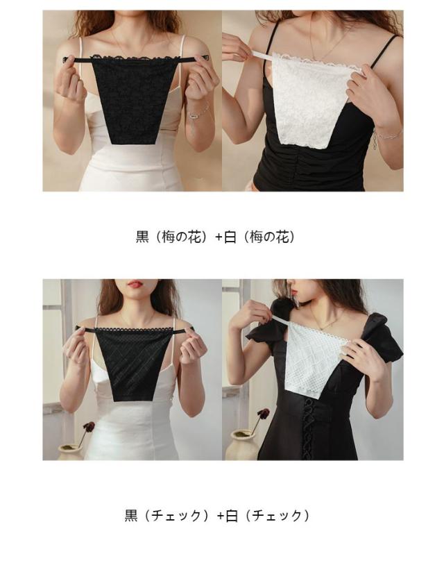 胸元カバー 肌着 ドレスアップ ブラカバー チラ見え防止 胸元隠し 谷間隠し カバー 隠す 下着 インナーウェア 胸元 2枚セット インナー 隠し 2枚セット 簡単装着 重ね着風 女性 レディース 無地 かわいい シンプル ブラック ホワイト
