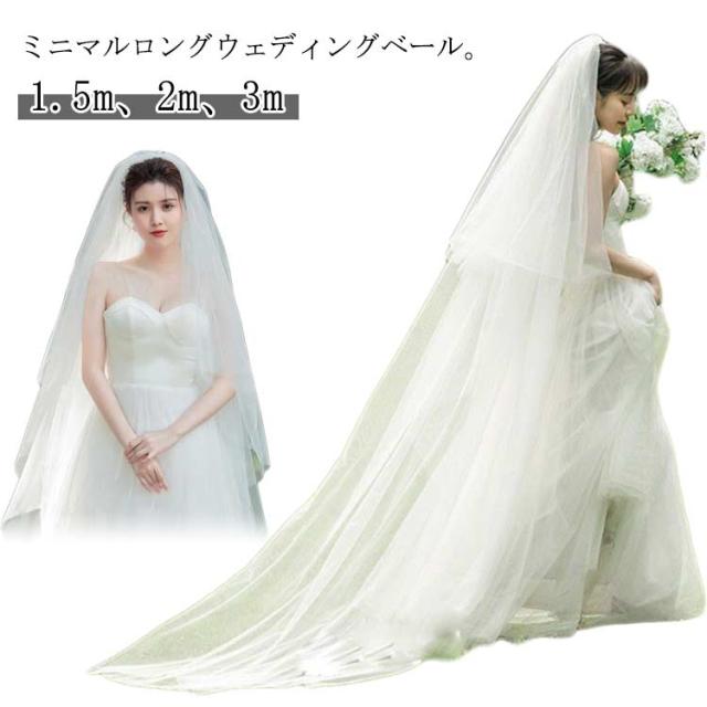 2層 コーム付 ベール 1.5m ダウン可能 ウエディングベール ウェディング 2m ロング丈 3m ロングベール ウエディングベール 髪飾り シンプル 透け感 ホワイト フェイスアップ 花嫁 ヘッドドレス ヘアアクセサリー 無装飾 結婚式 披露宴 前撮り