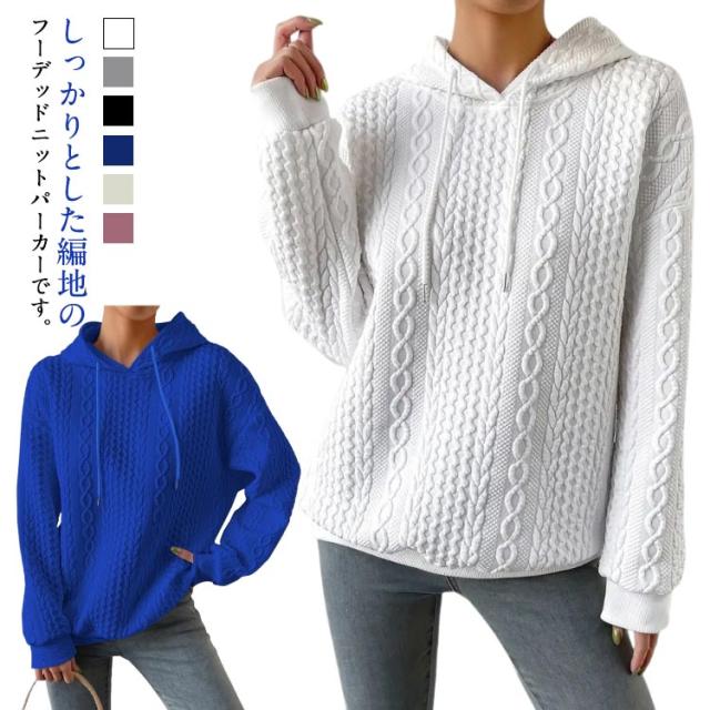 畦編み パーカー ニット トップス フーディ プルオーバー ドルマンスリーブ パーカー ドルマン ドロップショルダー ニット オーバーパーカー フード ニット セーター レディース 体型カバー ホワイト グレー ブラック ブルー アイボリー