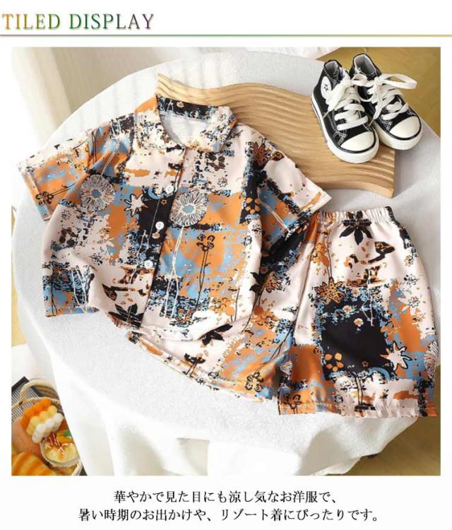 子供服 セットアップ 子供服 半袖 ショートパンツ 上下セット 2点セット 短パン 男の子 夏 花柄シャツ こども服 アロハシャツ 子供用 カジュアルシャツ 半袖シャツ ハーフパンツ 上下セット ジュニア ベビー服 男児 おしゃれ 可愛い 子供シャツ 夏物