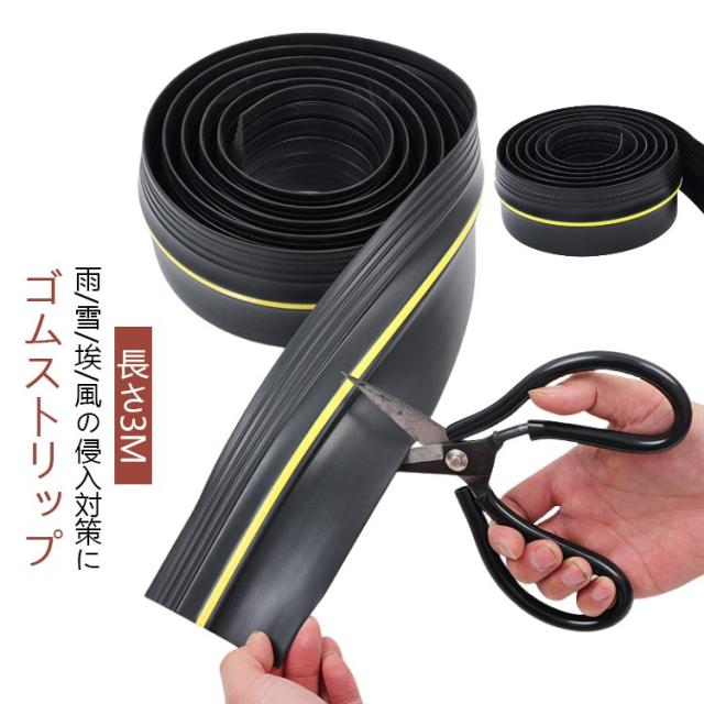 長さ3M ゴムストリップ DIY シャッター 雨/雪/埃/風 リッジ 隙間 ガレージ 車庫 コンクリート 駐車場 対策 すき間 侵入防止 PVC素材 簡単取り付け 滑り止め 扉 ゴムストリップ フロア マット バッタ対策 隙間 応急措置 シーリングストリップ