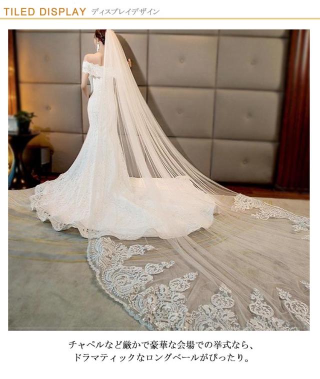 | 贅沢なレース×刺?のウエディングベール【3m】【2層?ダウン可能】 チャペルなど厳かで豪華な会場での挙式なら、ドラマティックなロングベールがぴったり。 肌触りの良い柔らかなソフトチュールを使用しました。 ボリュームがあるのに重くならず、軽やかにお召し頂けます。 2層式でベールダウンが可能のタイプでございます。 色味はなじみがよく様々なドレスに合わせやすホワイト。 おすすめシーン:花嫁様の挙式に!二次会ドレスや花嫁ウェディングドレスにパーティーで着用して♪ | |
