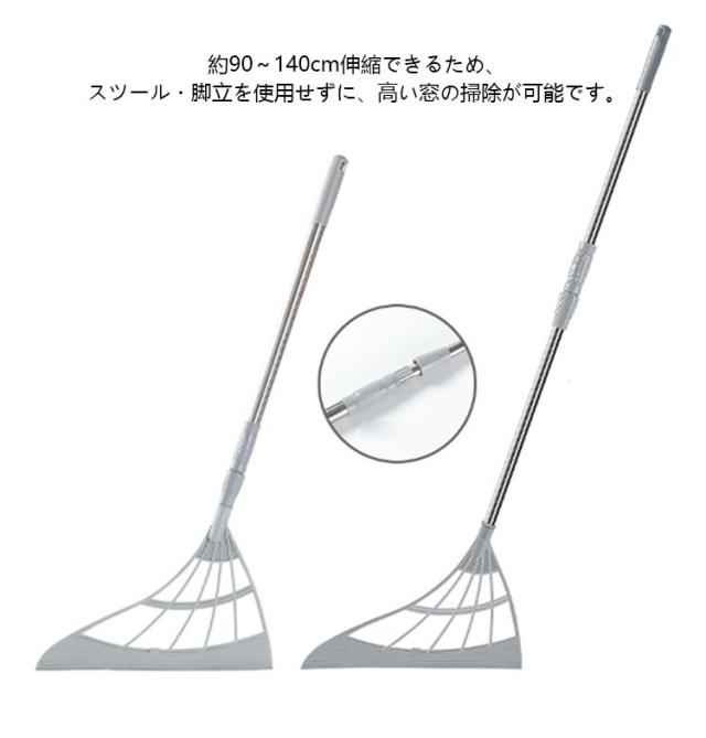 | 万能シリコンほうき 2本セット 伸縮式 先端部分がシリコンゴム製のヘラ状になっているほうきです。 シリコン製なので風呂場などの水場・液体の掃除や、窓掃除・洗車のときにワイパーとしても活躍。 31cmのワイドブレードで広い面積を一気にスワイプでき、掃除が楽になります。 約90〜140cm伸縮できるため、スツール・脚立を使用せずに、高い窓の掃除が可能です。 髪の毛やペットの毛、細かなチリなどが絡まりにくく、掃除がはかどります。 ヘッド部分は取り外して単独でも使用することもできます。 | |