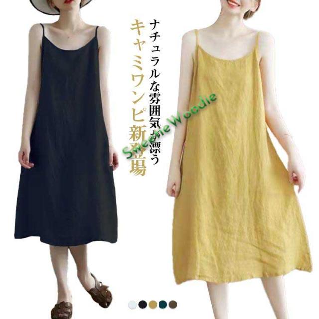 キャミソールワンピース ノースリーブワンピース インナーワンピース ロングワンピース レディース 春夏 綿麻ワンピース きれいめ キャミソール 着痩せ