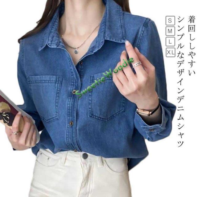 デニム シャツ レディース 長袖 デニムシャツ 羽織り ライトアウター ブラウス おしゃれ かっこいい 韓国ファッション 襟付き ボタンシャツ 柔ら