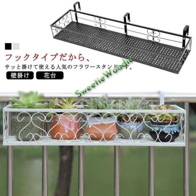 | フックタイプだから、サッと掛けて使える人気のフラワースタンドです。 テラス手すり?階段手すり?柵に簡単に吊るすことができます。 また、家庭用品収納ラック、物干しラックとしても使用可能です。 室内はもちろんサビにくいため屋外での使用もおすすめです。 喫茶店、書斎、花屋、オフィス、庭など、どんな所に置いても華やかな雰囲気を醸し出せます。 | |