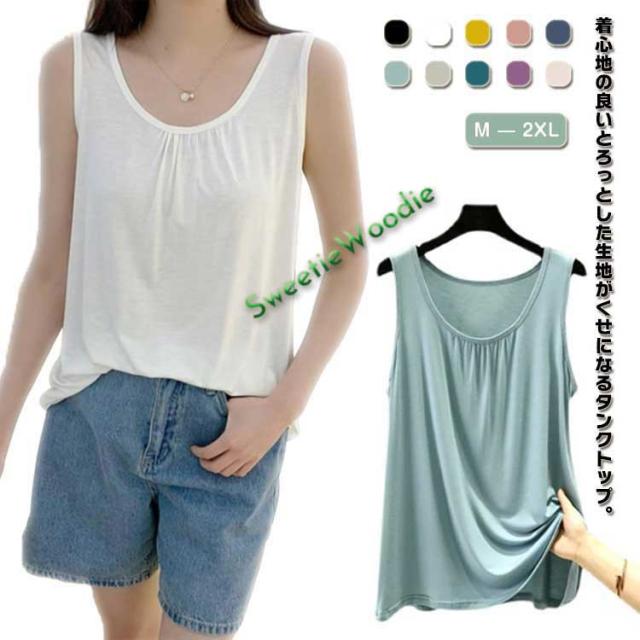 タンクトップ レディース 夏 ひんやり 涼しい ロング丈タンクトップ インナー ゆる 袖なし tシャツ おしゃれ 丸首 トップス ノースリーブ ゆった