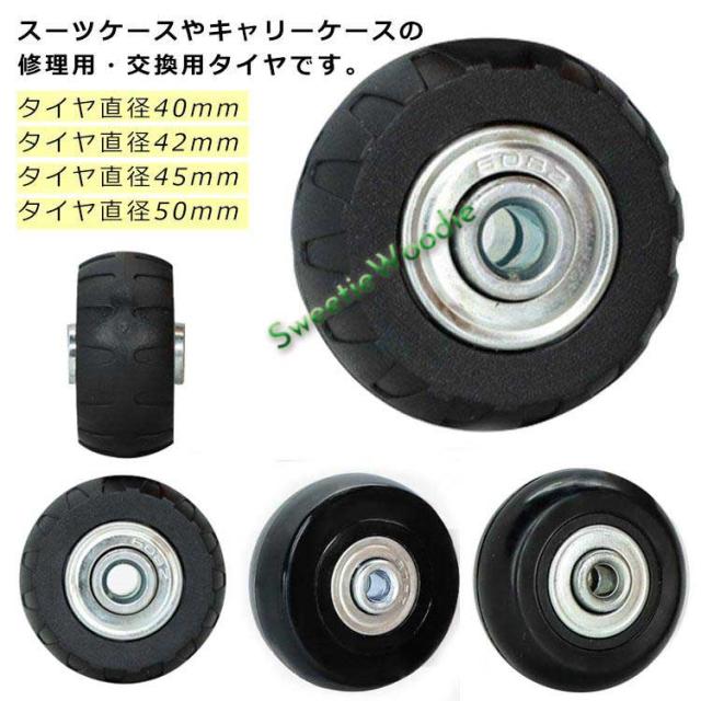 スーツケースタイヤ 交換用キット キャスター 自分で修理 DIY 4個セット 車輪のみ 交換用 タイヤ交換 ゴムタイヤ ゴム車輪 ベアリング式 取り替