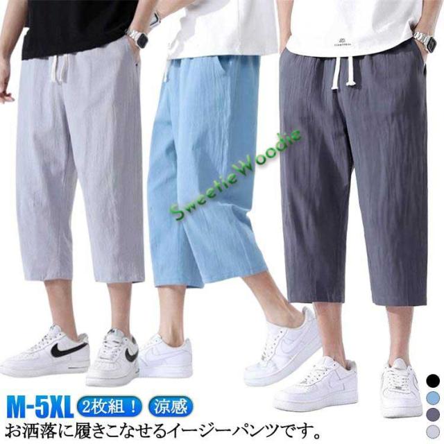 2枚組 イージーパンツ サルエル 七分丈 涼感 ハーフパンツ メンズ レディース 綿パンツ スリット ひざ下 無地 ルームウェア ダンス クロップドパ