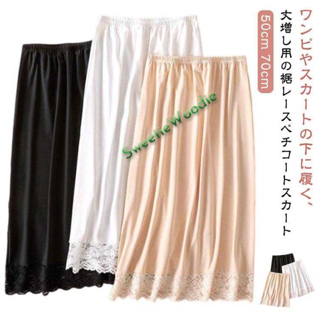 ペチコート 50cm 70cm レイヤード 丈増し スカート 付け裾 スカート レース 膝丈 大きいサイズ ペチスカート 重ね着 インナー 透け防止